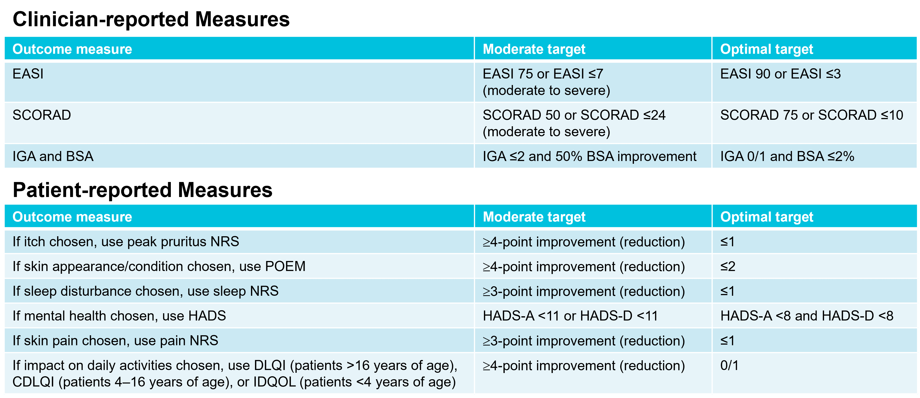 3. Silverberg J, et al. Combining treat-to-target principles and shared decision-making: International expert consensus-based recommendations with a novel concept for minimal disease activity criteria in atopic dermatitis. J Eur Acad Dermatol Venereol, 2024. 38(11): p. 2139-2148.
